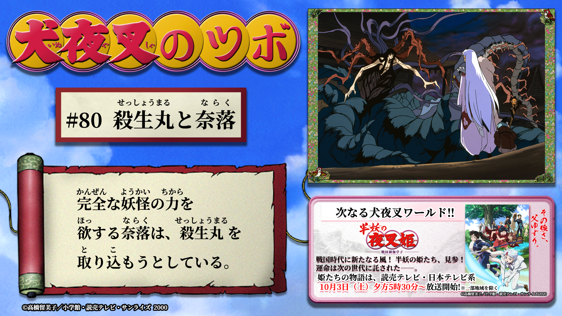 半妖の夜叉姫 犬夜叉のツボ 80 本日の 犬夜叉のツボ は 80 殺生丸と奈落 の投稿をお届けします 半妖の夜叉姫 は 読売テレビ 日本テレビ系 10月3日 土 夕方5時30分 放送開始 一部地域を除く 公式サイト T Co Gqiowtdf9a