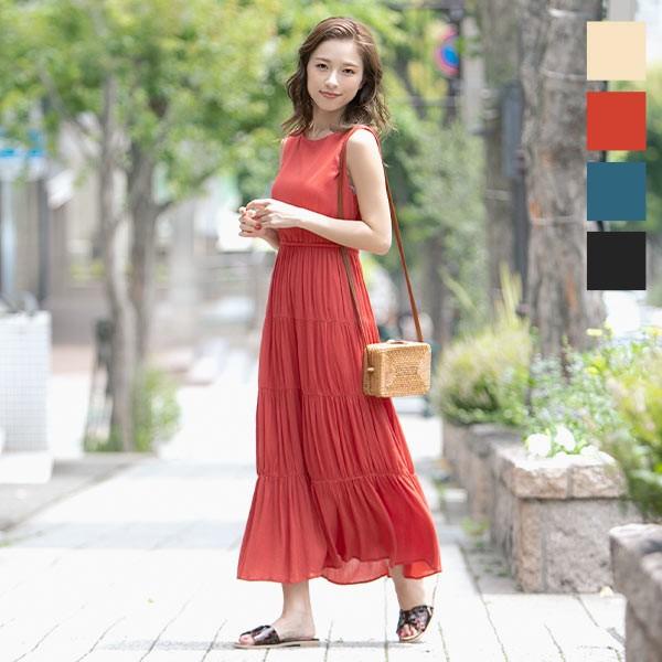 ワンピース ノースリーブ マキシ ティアードワンピ 楊柳 ノースリ レディース ロング フレア 裏地付き E2141 神戸レタスkobelettuce 通販 Paypayモール
